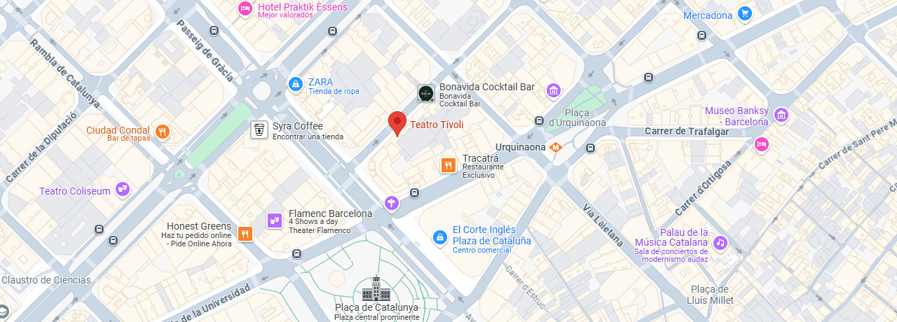 Estaciones Plaça Catalunya o Passeig de Gràcia (5–10 min a pie).